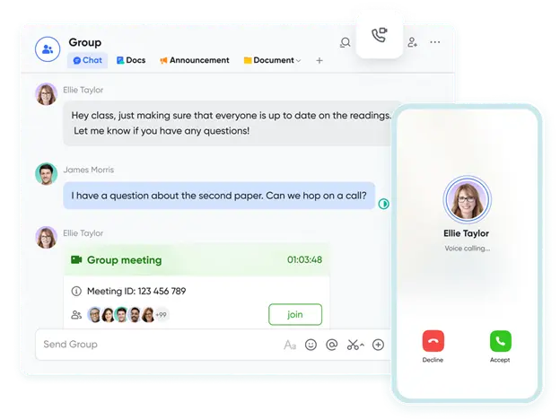 As organizations grow, the number of meetings grows, but without an agenda or structure to prevent wandering off track, meetings can be repetitive and useless. Lark Meetings embeds collaboration directly into video meetings; teams can pull up a shared Doc, update a Base record, and assign follow-up action items as the discussion is happening.